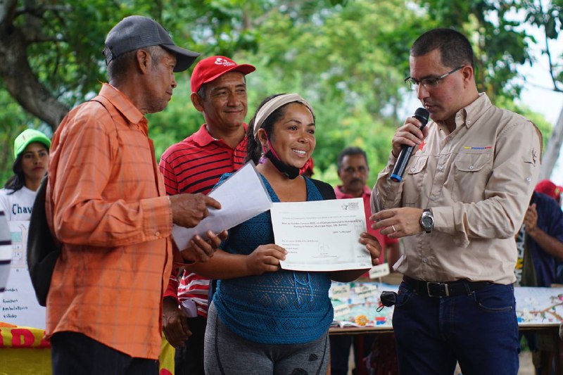 El ministro Arreza celebró que el Poder Popular de este territorio esté organizado y recibió de las Comunas del municipio Rojas, como parte del Sistema de Integración Comuna del Consejo Federal de Gobierno, el Proyecto “Plan de Siembra Conuco 2022, del Consejo Comunal La Macagua de la parroquia Dolores, estado Barinas”.