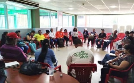 Bolívar, 10 de mayo de 2025 (Prensa MinComunas).- En los espacios de las Oficinas de la Dirección del Poder Popular de la Alcaldía de Caroní, en el estado Bolívar, se convocó una reunión de trabajo con los equipos del Ministerio del Poder Popular para las Comunas, Movimientos Sociales y Agricultura Urbana y su ente adscrito Fundacomunal, para abordar temas relacionados con la organización territorial, el avance en el control y seguimiento de los proyectos a ejecutar de la Consulta Popular con la finalidad de ofrecer herramientas y acompañamiento en el éxito de la gestión comunal y emprendedora.