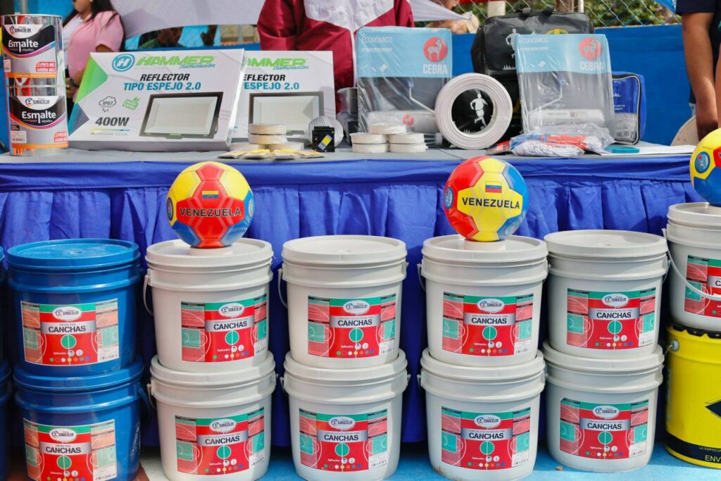 Sucre, 11 de diciembre de 2025 (Prensa Mincomunas).- Cinco Comunas del municipio Sucre en el estado Sucre, resultaron beneficiadas con materiales destinados a la rehabilitación de canchas de usos múltiples en la ciudad de Cumaná.