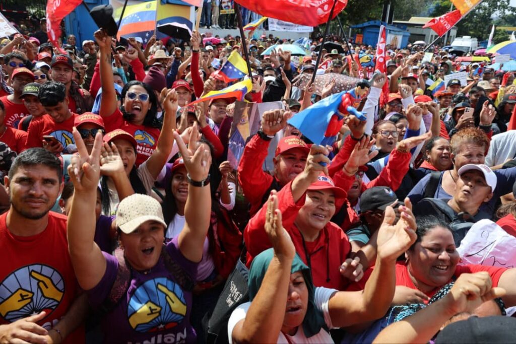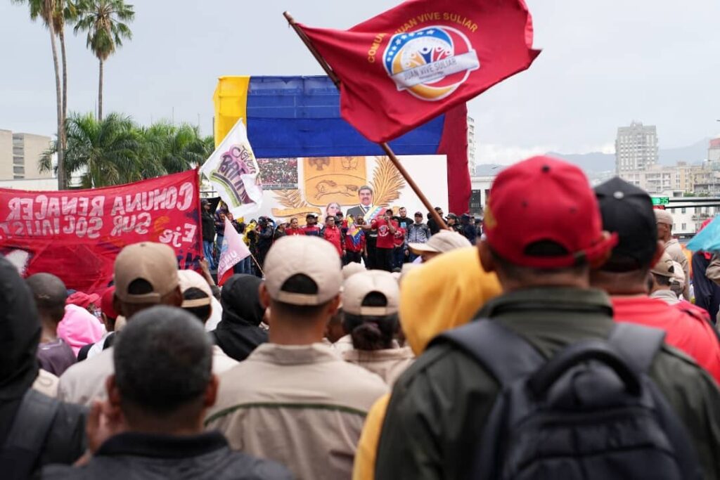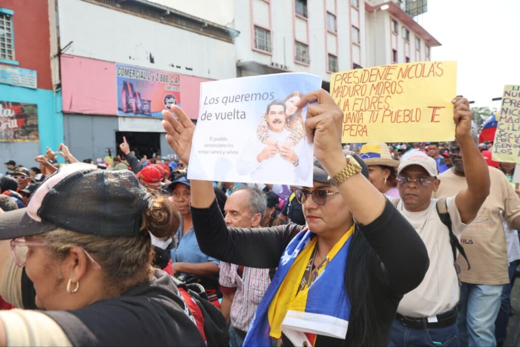 Caracas, 7 de enero de 2026 (Prensa Mincomunas).- Con la bandera tricolor en mano y consignas como ¡El imperio los secuestró, los queremos de vuelta!, las 5.336 Comunas y Circuitos Comunales del país se volcaron a las calles de Caracas para alzar su voz y exigir el retorno inmediato del presidente constitucional de la República Bolivariana de Venezuela, Nicolás Maduro Moros, y de la Primera Combatiente, Cilia Flores.