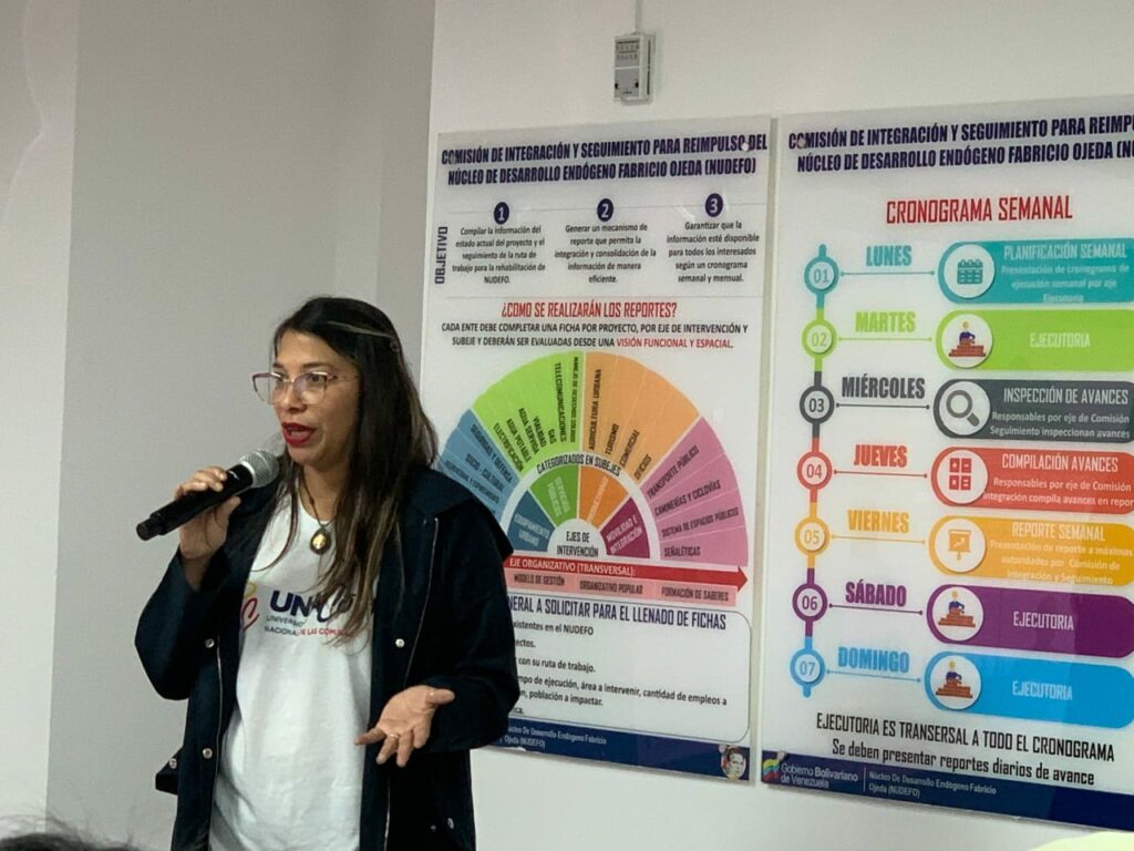 “A partir de lo sucedido el 3 de Enero, en los territorios Comunales se está en una reinvención permanente, para conocer cuáles son los proyectos estratégicos que necesita el nuevo Estado Comunal y profundizar la formación que garantizará el éxito del proyecto país. Con base a eso, debemos plantearnos cómo lograr la vía más expedita para consolidar la Economía Comunal, la autogestión Comunal y empoderamiento territorial, así como la construcción de relaciones entre los iguales”, explicó Pacheco, al tiempo que enfatizó que la unión, la comunicación, la formación y la organización son elementos imprescindibles para reconocerse como un solo cuerpo de la Revolución.